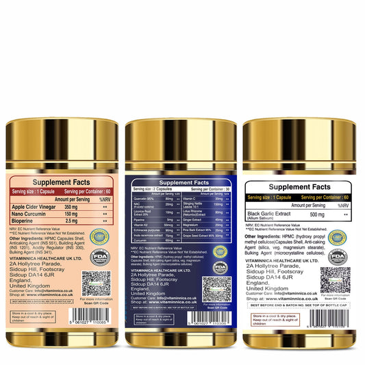 Heart Health Bundle- Vitaminnica Omega3+ Apple Cider Vinegar & Curcumin+ Black Garlic- 180 Capsules